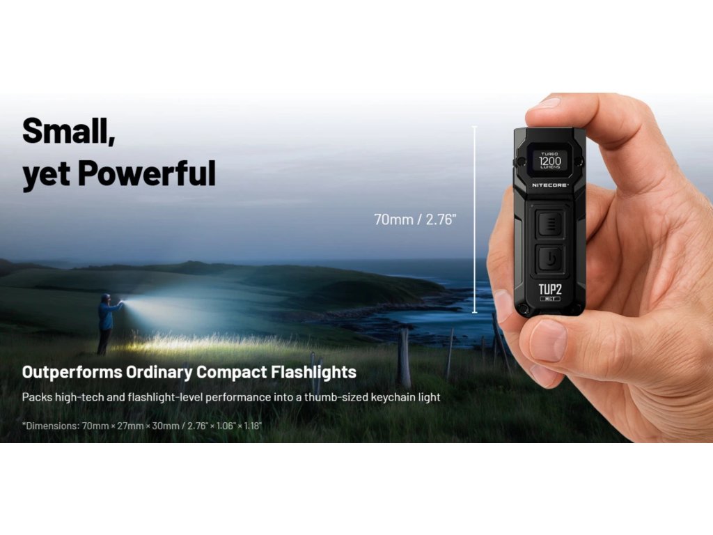 NITECORE TUP2 je špičková nabíjecí kapesní svítilna s výkonem až 1200 lumenů, robustními funkcemi a inteligentním OLED displejem. Díky třem volitelným teplotám světla a dlouhé výdrži je ideálním EDC doplňkem, který se vejde na klíče, do kapsy nebo batohu.